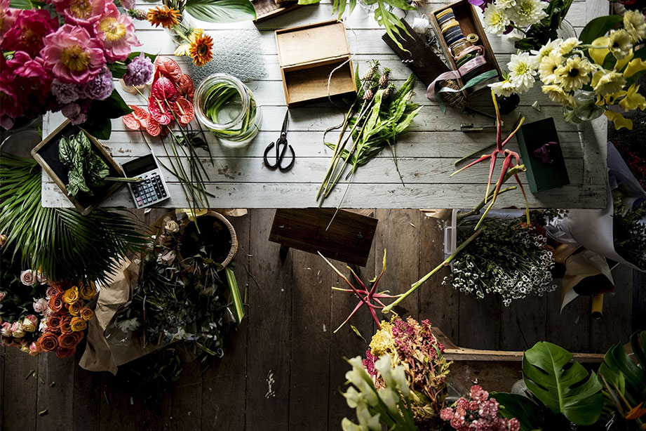 お花の店頭販売から空間プロデュースまで。チームでプロジェクトにあたるHANAならではのスキル、デザイン力があります。